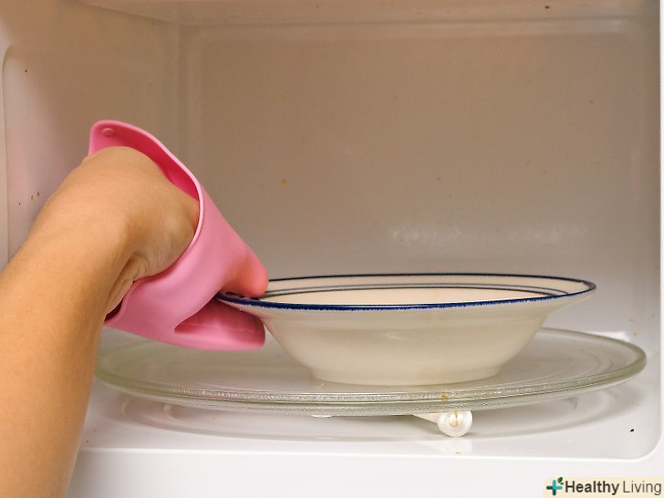 - Найбільш підходящі ємності для мікрохвильової печі зроблені зі скла, кераміки або пластмаси, головне щоб вони були неметалеві і зроблені не з фольги. Почитайте сторінку FDA Про мікрохвильові печі для отримання додаткової інформації.[7]