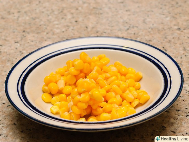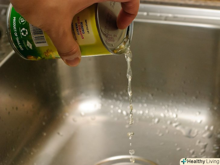 Злийте кукурудзу.приготувати кукурудзу (з банки або вирізану з качанів) можна в мікрохвильовій печі. Почніть з того, що злийте будь-яку рідину з банки, адже ви хочете отримати м'які смачні кукурудзяні зерна, а не кукурудзяний суп. Нижче ви побачите інструкції.- Консервована кукурудза:відкрийте банку консервним ножем, залишивши лише невеликий шматочок металу, що з'єднує банку з кришкою. Прикривши банку кришкою, злийте всю зайву рідину в раковину. Зніміть кришку, висипте кукурудзу в сито, обполосніть її водою і дайте стекти.