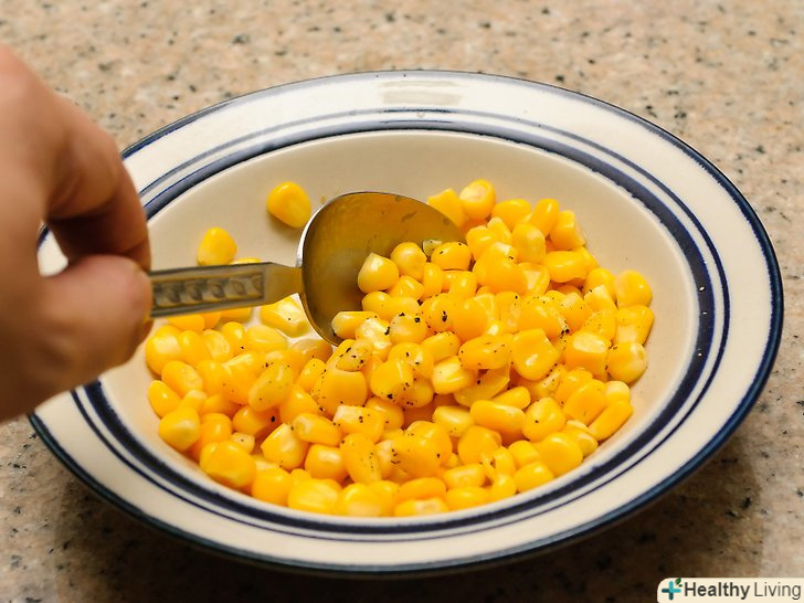Приправте і подавайте на стіл.коли кукурудза рівномірно нагрілася, і на ній не залишилося холодних ділянок, вона готова до вживання. У цей момент ви можете додати будь-які приправи за бажанням і насолоджуватися стравою.- Для обсягу в 454 грами досить буде півтора столових ложок вершкового масла, солі і перцю за смаком, щоб надати страві пікантний смак.