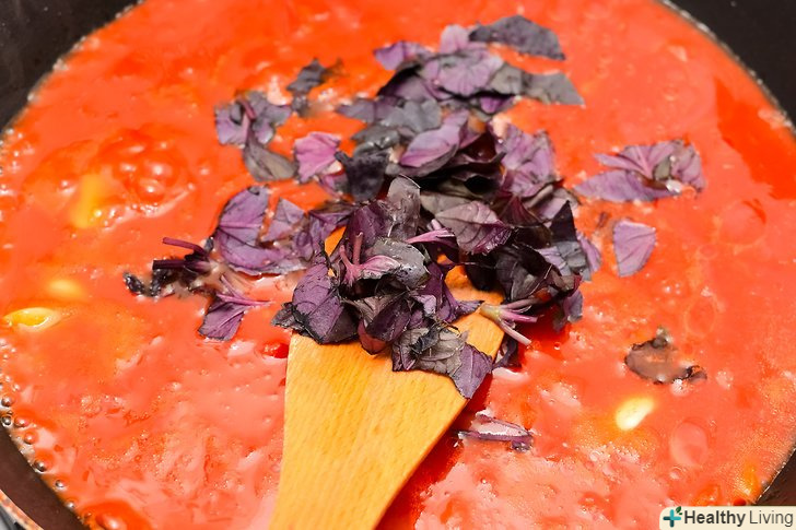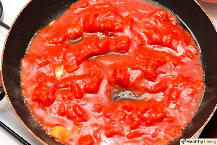 Нагрійте три столові ложки оливкової олії у великій каструлі.поки каструля нагрівається, подрібніть вісім зубчиків часнику і додайте їх до масла. Розмішуйте подрібнений часник з маслом протягом однієї хвилини, або поки він не почне розм'якшуватися.- Якщо у вас мало часу, ви можете купити томатний соус в магазині. Особливо хороший для цього рецепта базиліковий або часниковий томатний соус.