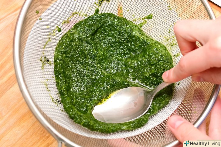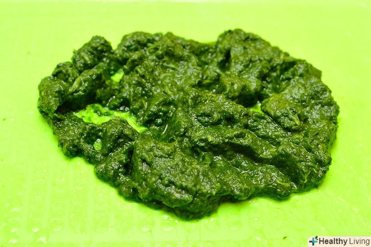 Промийте шпинат.потім, не промокаючи вологи, помістіть його в сковороду і поставте на середньо-високу температуру. Помішуйте шпинат, поки він не прив'яне і не підсохне-це повинно зайняти приблизно одну хвилину. Після цього помістіть шпинат в друшляк і опуклою частиною ложки видавіть залишилася вологу.[2]- Якщо ви поспішаєте, можете використовувати пакет замороженого рубаного шпинату. Просто підсушіть його в мікрохвильовій печі, потім помістіть в друшляк і опуклою частиною ложки видавіть зайву рідину.
