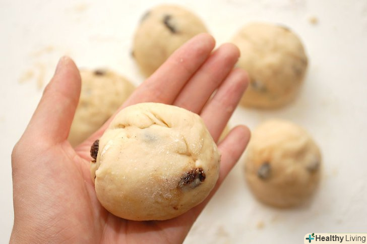 Зробіть булочки.розріжте тісто на 6 частин:- Візьміть один шматочок тіста і скачайте з нього кульку, склавши краями всередину і покатавши між долонями.
