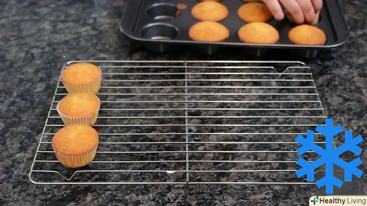 Дайте кексам охолонути, перш ніж прикрашати їх кремом або глазур'ю.помістіть їх на решітку для охолодження випічки або підставку і дочекайтеся, поки вони повністю охолонуть.[6]