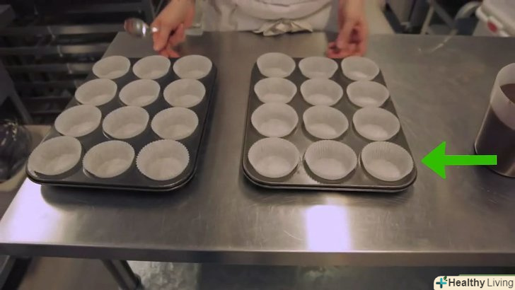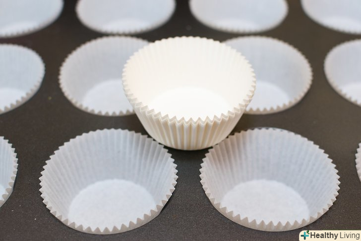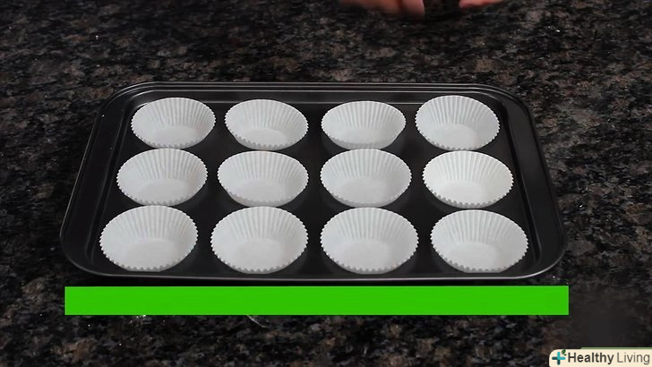 Помістіть 12 паперових або силіконових формочок для кексів в осередки форми для кексів.якщо у вас немає таких формочок, змастіть кожну клітинку у формі для кексів рослинним або вершковим маслом, щоб кекси до неї не прилипли.