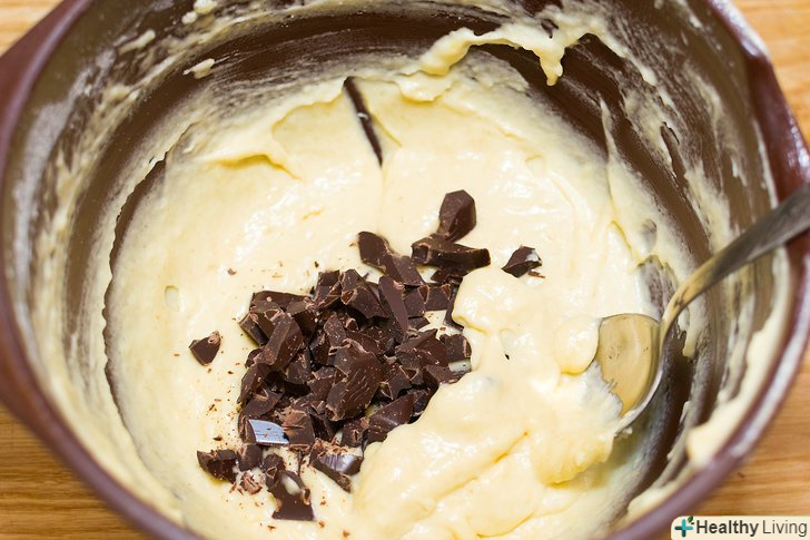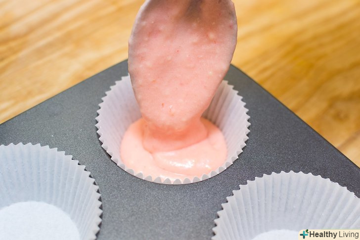 Якщо хочете, додайте додаткові інгредієнти.на цьому етапі можна додати в тісто шоколадні краплі, кондитерську посипання або інші інгредієнти на ваш смак.- Розділіть тісто на рівні порції і викладіть його в формочки.заповніть кожну формочку приблизно на дві третини.[3] якщо у формочці буде занадто багато тіста, при випічці кекс сильно підніметься, і тісто розтечеться за її краї.