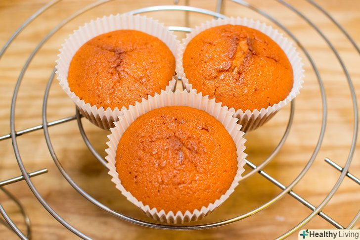 - Коли ви дістанете кекси з духовки, можете перевірити їх на готовність, злегка натиснувши на один з них пальцем. Якщо кекс пружний, значить, він вже готовий. Якщо кекс промнеться від натискання, поставте форму назад в духовку і почекайте ще кілька хвилин.