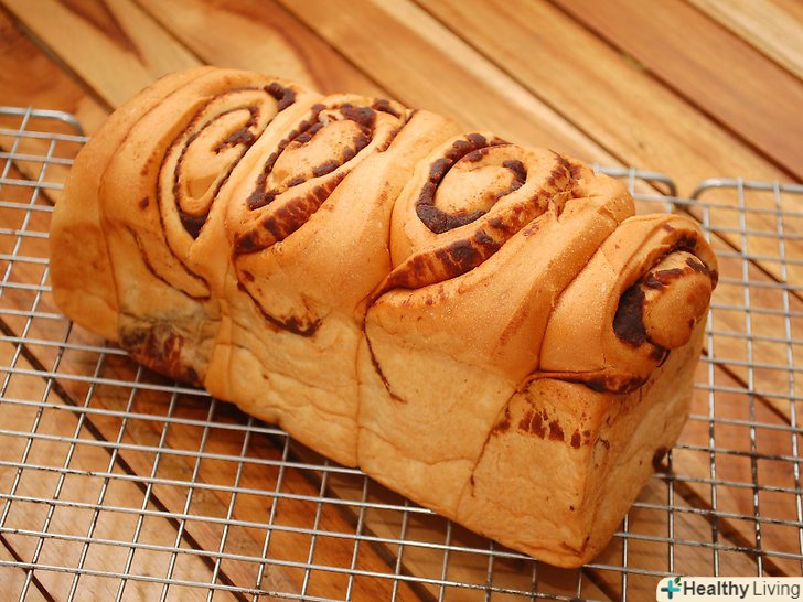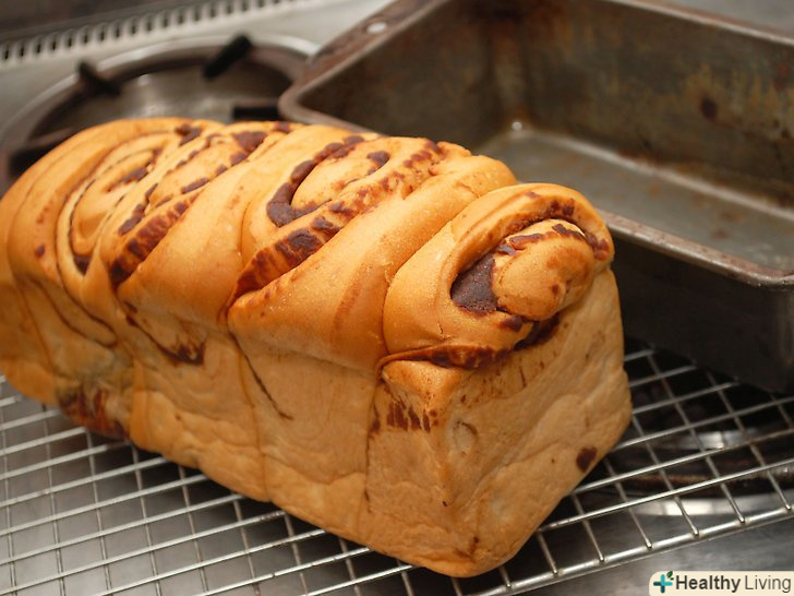 Вийміть хліб з духовки.використовуйте рукавиці для захисту рук і від гарячої форми і від духовки. При контакті з гарячим хлібом, залишайте рукавиці на початковому етапі.