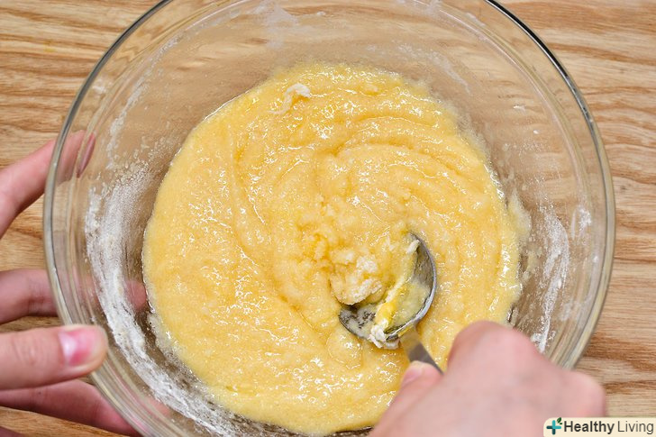 Змішайте яйця, цукор, борошно і сіль. У маленькій мисці змішайте віночком жовтки. Потім додайте цукор, борошно і сіль, поки все не буде добре перемішано.