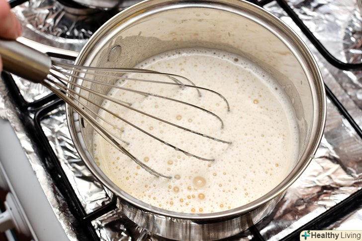 Нагрійте крем на середньому вогні.поки крем повільно нагрівається, продовжуйте постійно помішувати його віночком, щоб не було ніяких грудочок, і щоб він не пригорів.