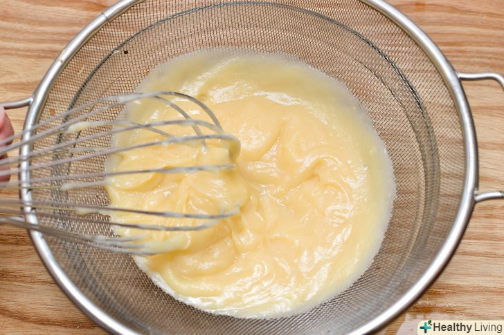 Процідіть крем.як тільки ви знімете крем з вогню і додасте ваніль, то покладіть сито на Вашу миску і вилийте крем через сито. Зворотною стороною ложки або лопаткою, ви можете допомогти видавити крем в миску.