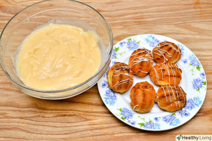 Зробіть профітролі.ці ласощі складаються з легкого тіста, наповненого величезною кількістю крему. Їх також умочують в шоколад, карамельний соус або цукрову пудру.- Спробуйте зробити тісто з корицею, і вмочити ваші профітролі в карамельний соус.