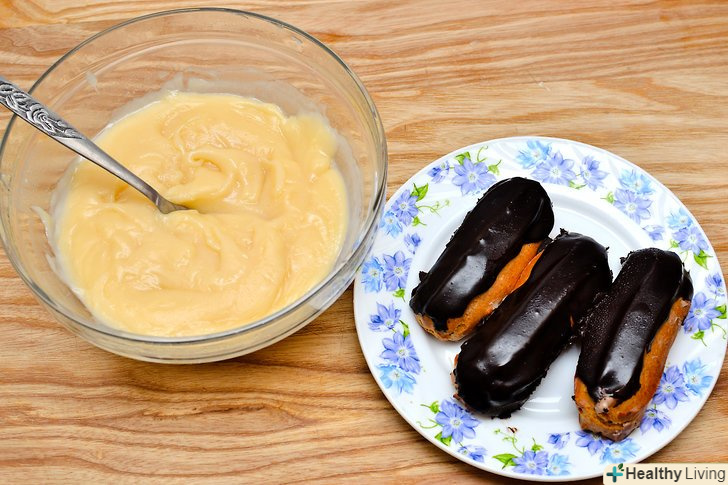 Зробіть еклери.еклери робляться з заварного тіста, з якого робляться невеликі брусочки, наповнені кремом, і покриті шоколадною глазур'ю. Це дуже популярний французький десерт, який продається тепер в пекарнях по всьому світу.- Зробіть італійський десерт Канноліс.тісто розкручується і смажиться, потім наповнюється кремом з корицею. Крем часто змішують з шматочками фісташок або шоколадною крихтою.