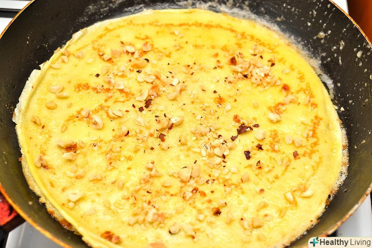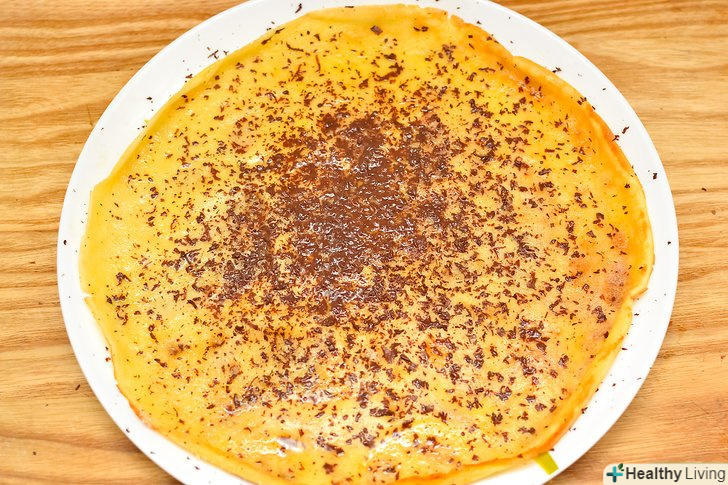 Використовуйте крем з лісових горіхів і посипте його горіхами або фруктами.у Франції та інших країнах крем з лісових горіхів є однією з найпопулярніших начинок для млинців. Крем доповнює легкий аромат млинців.- Посипте крем з лісових горіхів подрібненими підсмаженими горіхами, якщо хочете, щоб млинці хрустіли.