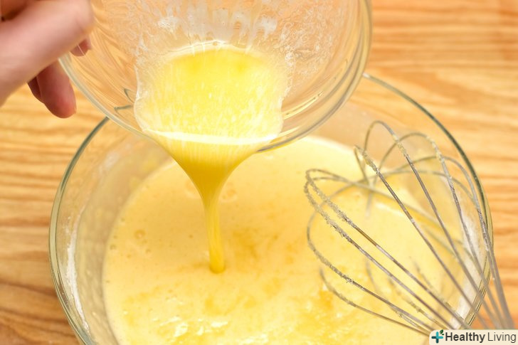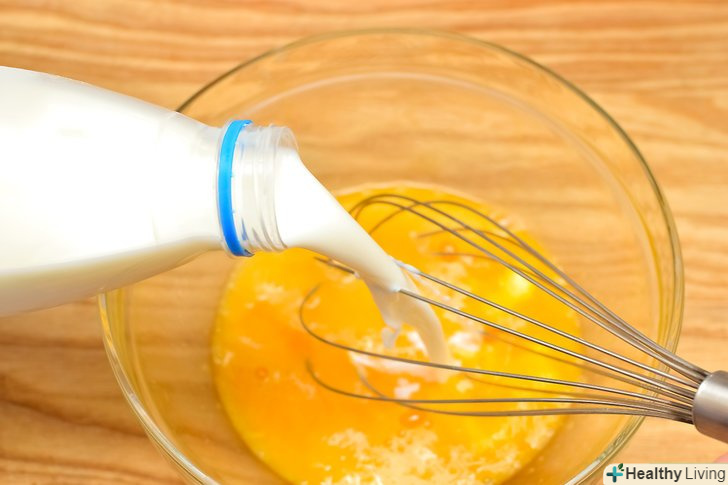 Чергуйте молоко і борошно.відміряйте півсклянки борошна і додайте в яєчну суміш. Змішайте з яйцями, поки не залишиться всього кілька маленьких грудочок. Тепер додайте в суміш півсклянки молока і ретельно перемішайте. Додавайте борошно і молоко по черзі, поки вони не закінчаться.- Таке змішування сприяє отриманню однорідної маси без грудочок.