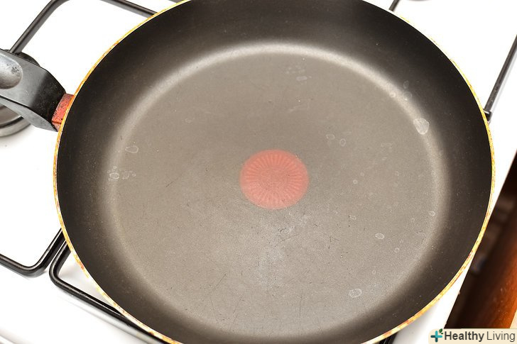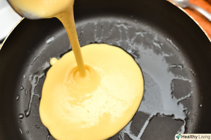 Розігрійте сковороду.ви можете приготувати млинці на сковороді з антипригарним покриттям, сковороді для млинців або простій сковороді. Вибирайте сковороду 20 см в діаметрі. Нагрійте сковороду на плиті на середньому вогні. Розпиліть жир для готування, щоб млинці не прилипали.[1]