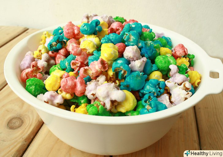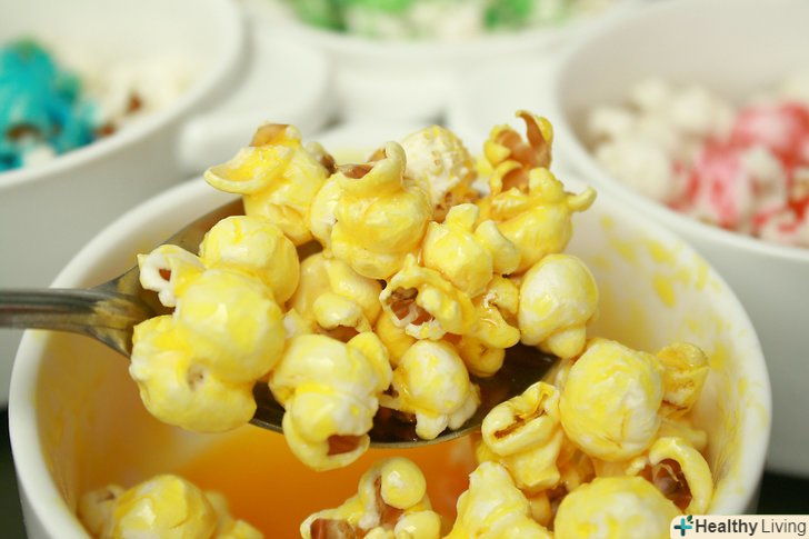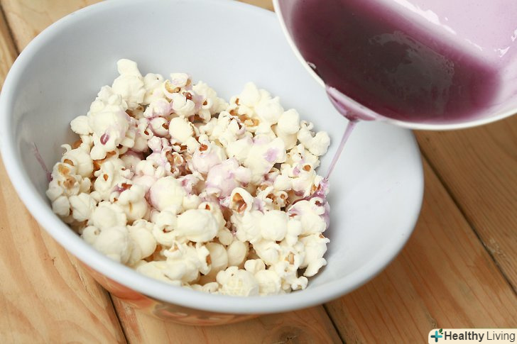 Ретельно перемішайте попкорн з барвником.вам буде набагато веселіше, якщо ви знайдете собі помічника.
