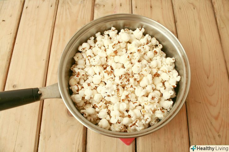 Зачекайте, поки попкорн не почне стріляти.час від часу гарненько струшуйте каструлю, щоб попкорн не підгорав. Струшуйте частіше, поки не почуєте характерний шум.
