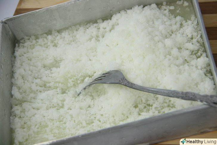 Заморожуйте півтори години, потім розбийте лід виделкою. Збийте його.