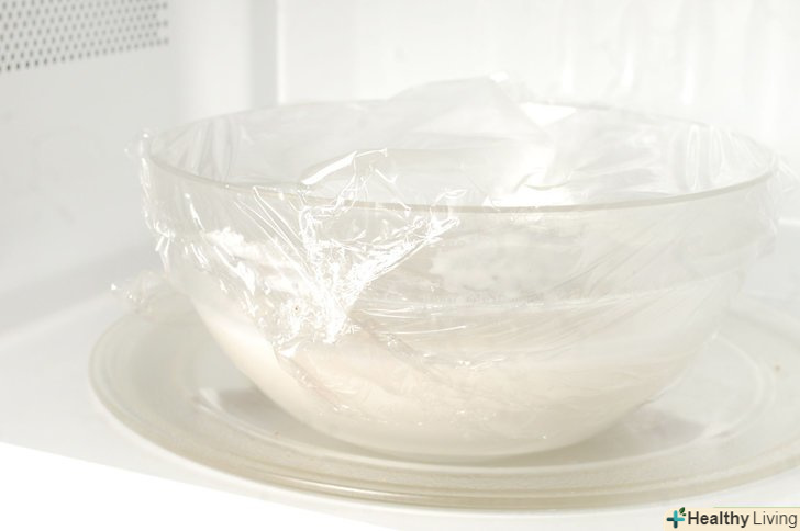 Знову покладіть поліетиленову плівку на тісто і помістіть його назад в мікрохвильову піч ще на 30 секунд. Дістаньте тісто і розімніть.