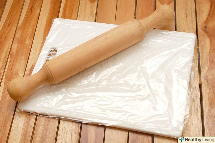 Накрийте дошку для розрізання або оброблення продуктів поліетиленовою плівкою.