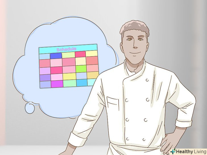 Будьте готові працювати в складних умовах.у випічці важливий час: як час приготування, так і час доставки випічки до столу клієнтів. Багато пекарів змушені працювати дуже швидко, особливо якщо у них велика клієнтська база, не жертвуючи при цьому якістю. Щоб домогтися успіху в цій справі, вам слід навчитися працювати в умовах стислих термінів.[11]- Для того, щоб вам було простіше, приведіть в порядок робоче місце, щоб вам не довелося шукати рецепти і обладнання по всій кухні.