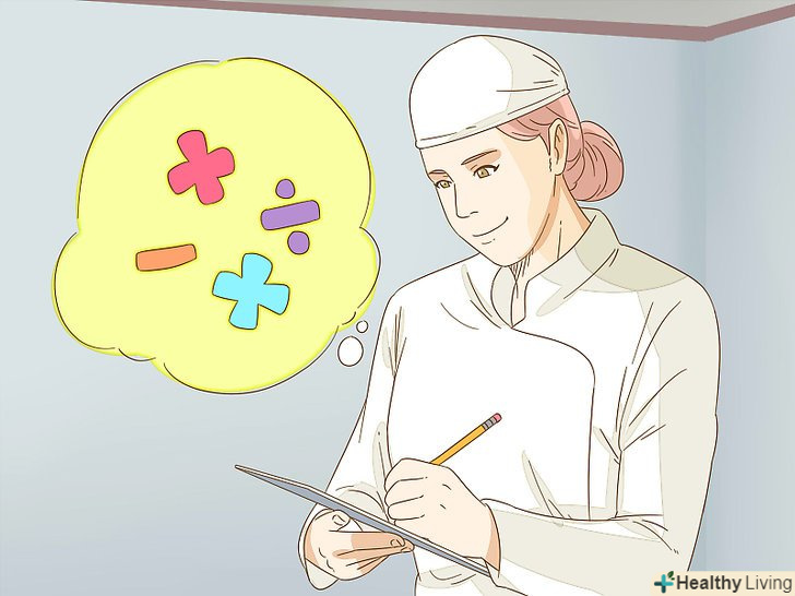Володійте базовими знаннями математики.ці знання (особливо розуміння дробів) будуть необхідні вам для того, щоб змішувати, зважувати інгредієнти і коригувати рецепти в залежності від обсягу випічки. Якщо в школі ви пропускали уроки математики, вам доведеться вивчити все це самостійно. Це дозволить вам змінити рецепт і не зіпсувати партію круасанів лише тому, що ви щось неправильно порахували.[8]- Якщо математика завжди давалася вам погано, не переживайте. Вам не потрібно вивчати тригонометрію і вміти проводити складні розрахунки для того, щоб пекти вишукані булочки. Однак ви повинні вміти швидко складати, віднімати, множити і ділити в розумі.