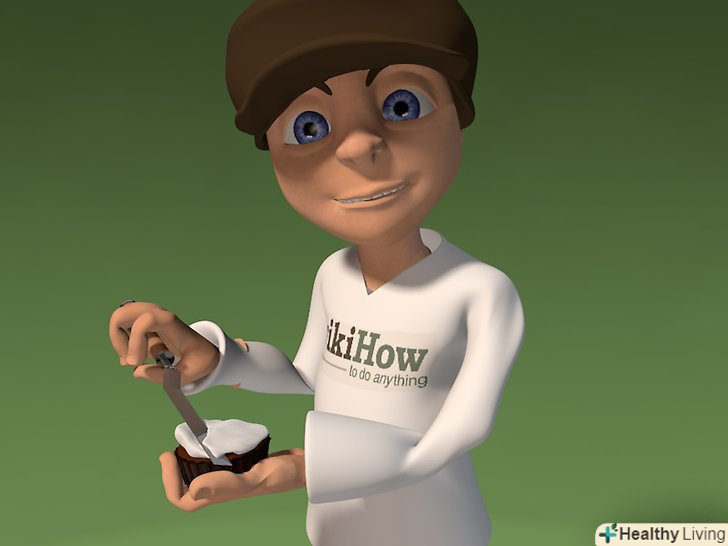 Морожені кекси традиційним способом.помістіть повну ложку глазурі в центр кексу. Використовуйте кулінарну лопатку (або мастихін) щоб розподілити глазур по всій верхівці кексу, не досягаючи країв. Якщо бажаєте, розподіліть до гладкості верхівку за допомогою лопатки.- Щоб верхівка виглядала гладко, проводите лопаткою до країв через верхівку. Щоб верхівка виглядала об'ємно, легенько підніміть глазур за допомогою кінчика лопатки.