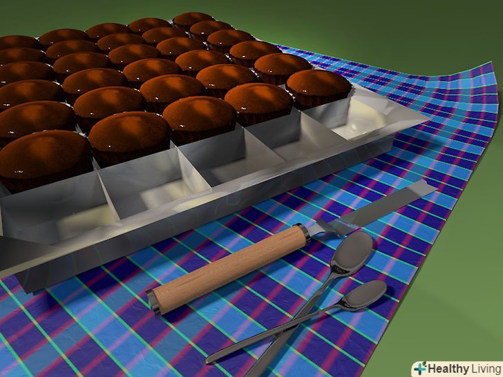 Полийте кекси ганашем або розтопленою цукеркою.полийте ваш глазурований кекс ганашем, розтопленим шоколадом, або глазур'ю зверху кексу. Щоб це вийшло, дайте кексу охолонути. Починайте поливати з центру кексу. Ви можете повністю покрити кекс або тільки верхівку і дозволити стікати з боків.- Залиште кекси на охолодженої решітці, розташованої над листом для випічки. Все що буде стікати з кексів, буде потрапляти на деко для випічки. Дайте кексам охолонути, щоб потім зробити більше прикрас.