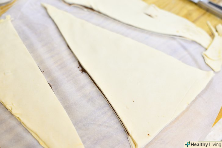 Спочатку необхідно розморозити листкове тісто і розігріти духовку.встановіть температуру на 204 С.потім розморозьте упаковку вагою 500 грам листкового тіста відповідно до інструкцій виробника.[1]- Тісто має бути досить м'яким для роботи, але не дуже нагріте. Тісто стане липким, якщо його температура буде надмірно високою.