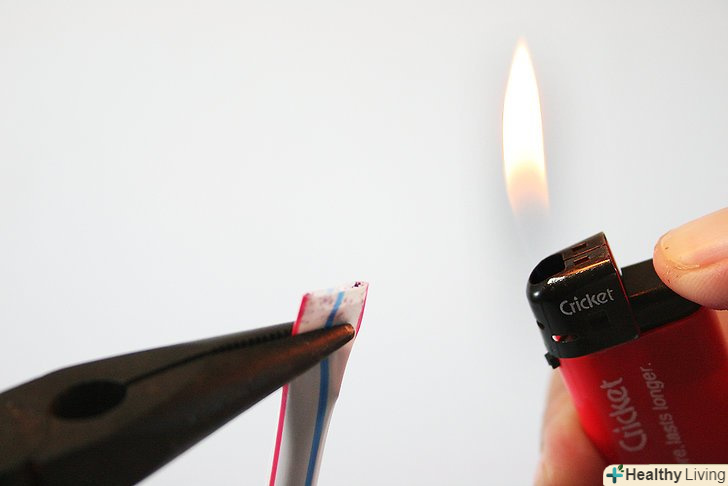 Використовуйте ваш запальничку знову і помістіть її до верхньої частини (кінець, який ще не запечатаний), і потім затисніть острогубцами на 4-5 секунд.
