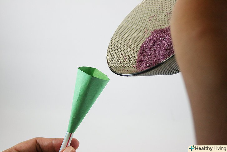 Візьміть воронку, помістіть вузький кінець в соломинку, і висипте вашу суміш цукру і екстракту(і/або пакети kool-aid або порошок соку і т. д.) в воронку. Цукор повинен головним чином впасти на дно, але в кінці, можливо, вам буде потрібно трохи потрясти, для того, щоб утрамбувати останні шматочки від в соломинку. (Переконайтеся, що ви не переповнюєте її, і заповнюєте її, приблизно, на 2,5 см нижче вершини).