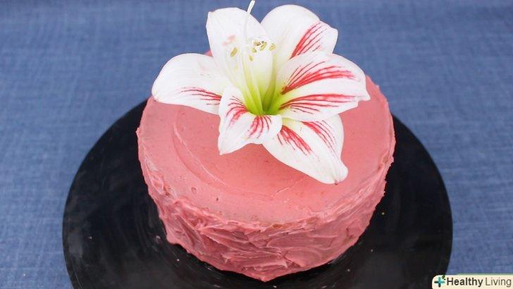 Помістіть поверх торта або на його бічні сторони живі квіти.якщо ви хочете надати торту елегантний або природний вигляд, придбайте не оброблені пестицидами квіти і акуратно вставте їх стеблами в торт. Щоб торт довше залишався свіжим, оберніть стебла харчовим герметиком, перш ніж вставляти їх. Можна використовувати наступні придатні в їжу квіти:[10]- Ромашки;