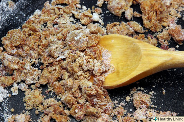 - Підсмажте нутове борошно на середньо-слабкому вогні. Постійно помішуйте борошно. Вам доведеться стояти біля плити близько 10-12 хвилин, постійно помішуючи суміш і стежачи за тим, щоб вона ставала коричневою рівномірно. Це найважливіший і відповідальний крок. Якщо Нутовая борошно не приготується повністю, то збереже не дуже приємний сирий присмак, в іншому випадку вона може підгоріти, що теж негативно позначиться на смаку солодощів. Якщо ви будете постійно помішувати суміш, то уникнете таких проблем.[2]