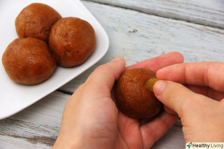 Додайте родзинки.родзинки можна додати безпосередньо в суміш або покласти по одній родзинці в кожне ладду. Щоб смак родзинок був яскравішим, обсмажте його в ДХІ, а потім промокніть паперовим рушником.- Також підійдуть шматочки будь-яких сухофруктів.