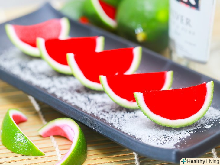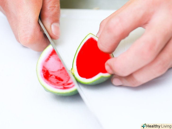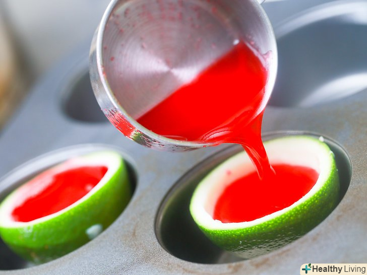Розкладіть половинки лайма на підносі так, щоб вони торкалися краями один одному.це забезпечить їм стійкість, поки желе буде застигати.