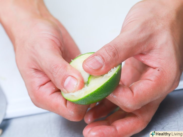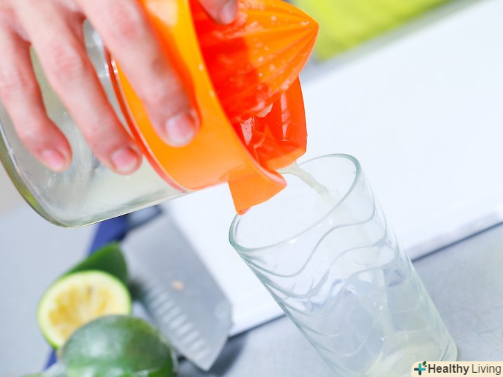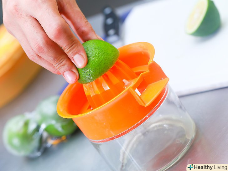 За допомогою соковижималки видавіть сік з лаймів.через сито вилийте його в банку, щоб відібрати насіння.