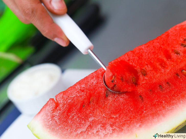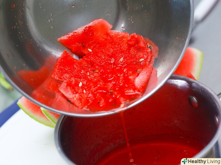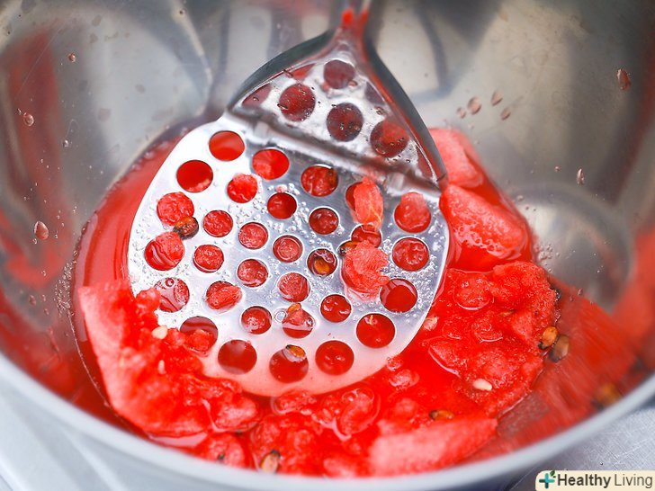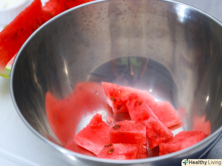 Покладіть кавунову м'якоть в ємність, де ви потім зможете розтерти її з іншими інгредієнтами.можна використовувати ємність для міксера або просто велику миску.