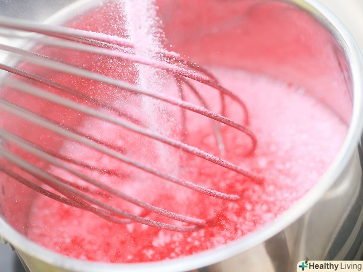 Додайте кавунове желе в гарячу воду і розмішуйте віночком, поки воно повністю не розчиниться.