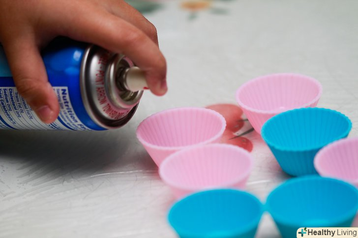 Покрийте форми тонким шаром рослинного масла або антипригарним спреєм.цей метод "зволоження" форм буде необхідним тільки протягом перших кількох використань.