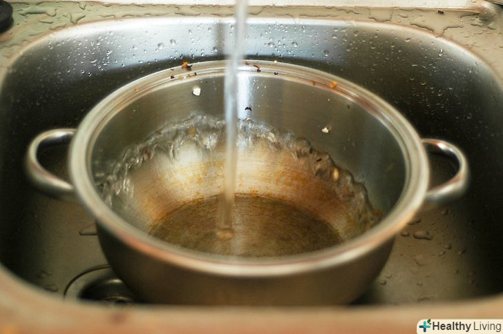 Дайте розпеченому сотейнику охолонути.коли сотейник стане не дуже гарячим, промийте його водою з милом.