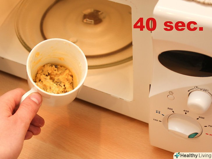Випікайте печиво в мікрохвильовці.поставте тісто для печива в мікрохвильовку і готуйте 40 секунд. Потім перевірте його готовність. Готове печиво має бути сухим. Якщо воно виглядає трохи рідким або сирим, продовжуйте запікати з інтервалом в 10 секунд до повної готовності. Подавайте печиво до столу відразу після випікання.[10]- Намагайтеся не випікати печиво в мікрохвильовці довше 1 хвилини. Печиво доходить в міру охолодження, тому не слід залишати його в мікрохвильовці надовго.