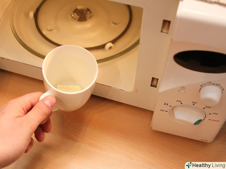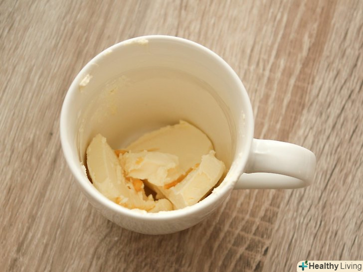Розтопіть вершкове масло.щоб приготувати печиво, візьміть невелику чашку. Вона повинна бути місткою, тому використовуйте чашку об'ємом близько 230 мл.покладіть 1 столову ложку вершкового масла в чашку і підігрівайте в мікрохвильовці, поки не розчиниться.[6]- Щоб розчинити печиво потрібно зовсім небагато часу. Почніть з 5 секунд, а потім чекайте ще трохи часу. Масло не варто доводити до кипіння, інакше воно розбризкається по стінках мікрохвильовки.