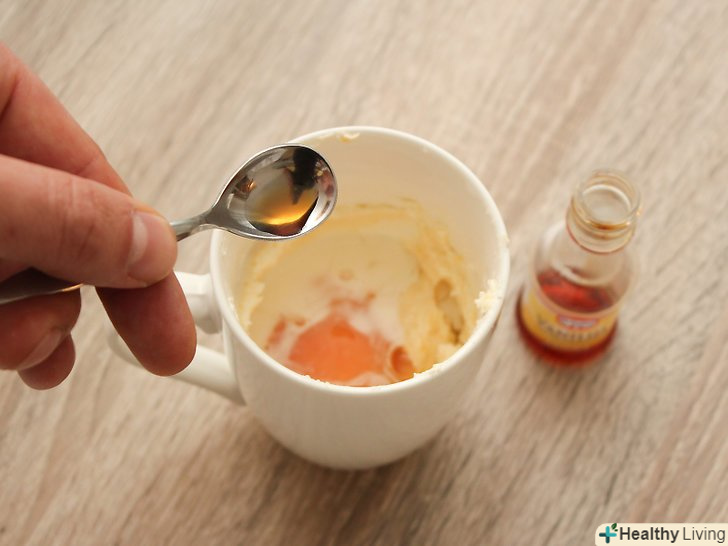 Додайте рідкі інгредієнти.додайте 1 яйце, 1 столову ложку молока і 1 чайну ложку ванільного екстракту. Змішайте інгредієнти до однорідної маси. Перевірте, чи добре розмішалося яйце.[12]- Якщо під рукою немає ванільного екстракту, замініть його на мигдальний екстракт або не використовуйте зовсім.