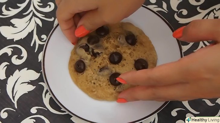 Спечіть печиво в мікрохвильовці.покладіть пергамент з тістом для печива на тарілку, яку можна безпечно ставити в мікрохвильовку. Випікайте печиво 40 секунд. Якщо воно все ще виглядає рідким, продовжуйте випікати в мікрохвильовці з інтервалом в 5 секунд до повної готовності. Остудіть його протягом хвилини, перш ніж зняти з пергаментного паперу.[5]- Це печиво найкраще подавати до столу і вживати в їжу відразу після випікання. Не дайте йому повністю охолонути, інакше тісто затвердіє.