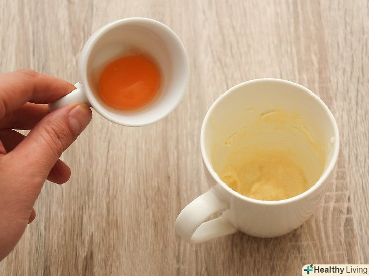 Додайте яєчний жовток.Розбийте 1 яйце і відокремте яєчний жовток від білка. Білок в цьому рецепті вам не стане в нагоді. Додайте яєчний жовток в чашку зі збитим вершковим маслом і цукром. Розмішуйте суміш до однорідної маси.[8]- Можна зберігати яєчний білок в холодильнику і використовувати в іншому рецепті, але пустити в справу його потрібно протягом декількох днів.