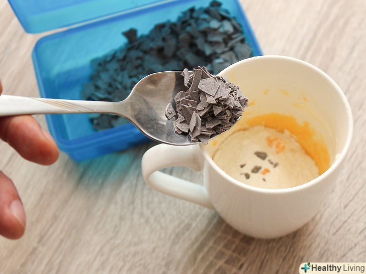 - Додайте сухі інгредієнти.необхідно всипати 3 столових ложки борошна, але починайте з однієї ложки, після чого додайте дрібку солі і дрібку пекарного порошку. Потім всипте 2 столових ложки борошна і ретельно вимісити тісто, щоб сухі інгредієнти ретельно перемішалися. Тепер прийшла черга 2 столових ложок шоколадної крихти.[3]