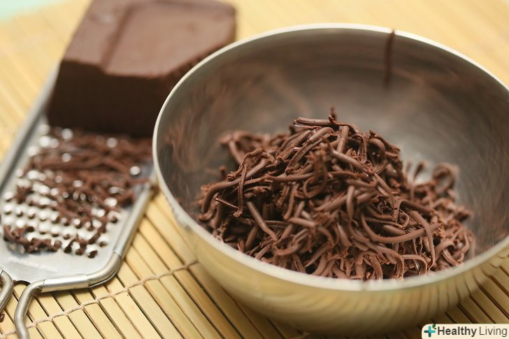 Натріть шоколад.використовуйте для цього тертку для сиру або Microplane. Намагайтеся натерти його якомога тонше, щоб шоколад швидко розтанув при змішуванні з теплою водою.