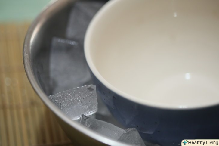 Заповніть велику миску льодом.використовуйте велику кількість льоду, так як вам треба буде швидко охолодити шоколад. Поставте в миску маленьку миску і переконайтеся, що лід покриває її стінки.