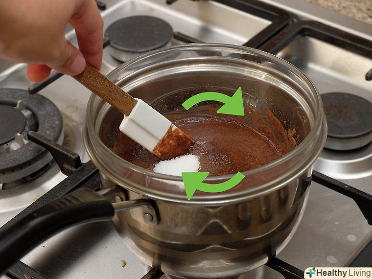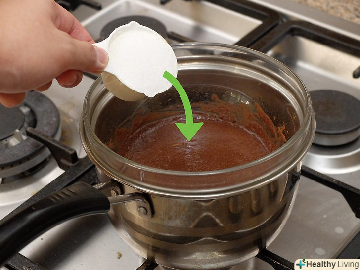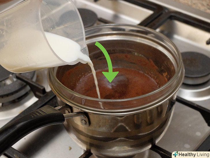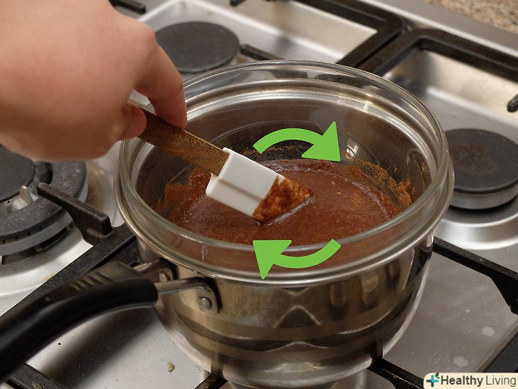 Додайте суміш з какао порошку в гарячу воду і перемішайте. Суміш потрібно підігріти. Вона повинна бути гарячою, але не доведеною до кипіння. Вилийте гарячу суміш у миску.