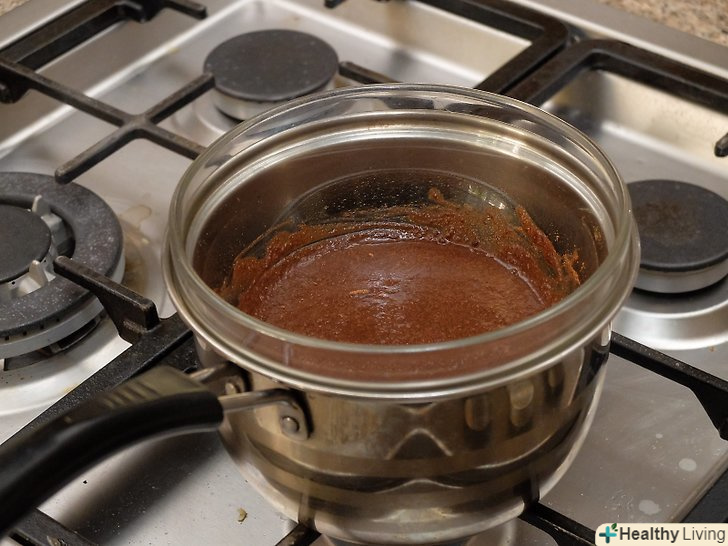 Підігрійте воду у великій каструлі, але не доводьте її до кипіння.перекладіть какао боби в меншу каструлю. Поставте її в каструлю з водою. Коли паста нагріється, але не звариться, перекладіть її назад в миску і продовжуйте перемішувати в ступці. Продовжуйте цю процедуру, поки не вийде однорідна маса.